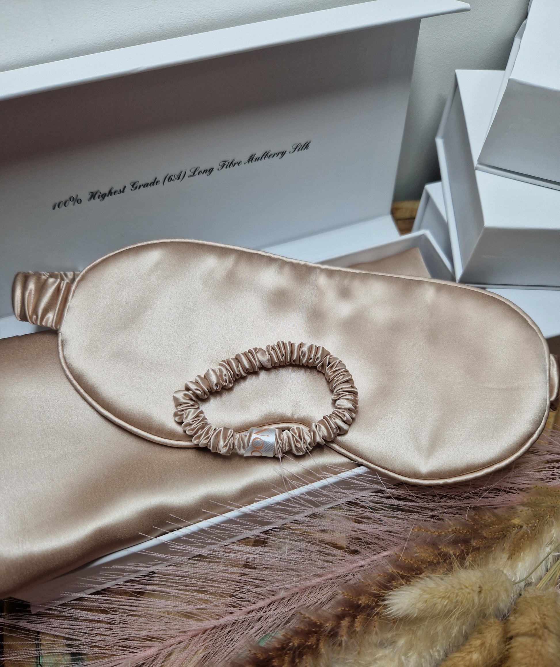 Mulberry šilko 3 dalių rinkinys. Šampaninės spalvos.